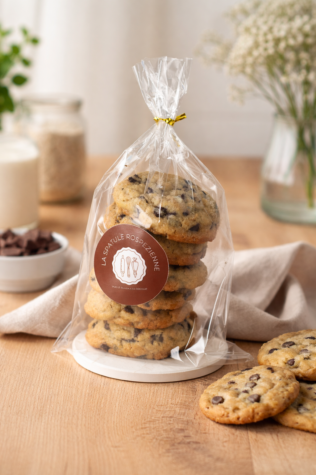 Chez La Spatule Rospezienne, nous préparons des cookies faits maison à partir d’ingrédients simples, sélectionnés avec exigence. Beurre, chocolat de qualité, farine française… chaque fournée est réalisée artisanalement pour offrir une texture moelleuse à cœur et croustillante à l’extérieur.
